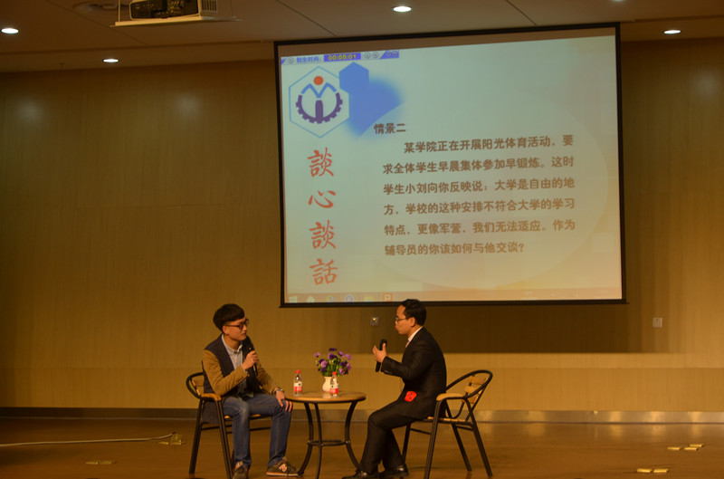 “老师让我扮演‘谈心谈话’中学生角色,我从上周六就开始练习,反复琢磨如何与老师较劲,大家都在努力给老师们挖坑。”扮演“小沈”的机制131班的金科名说,“同学们遇到问题应该多和辅导员交流,就像今天一样,老师们会热情帮我们解决问题的,希望大家都能和自己的老师很好的相处。