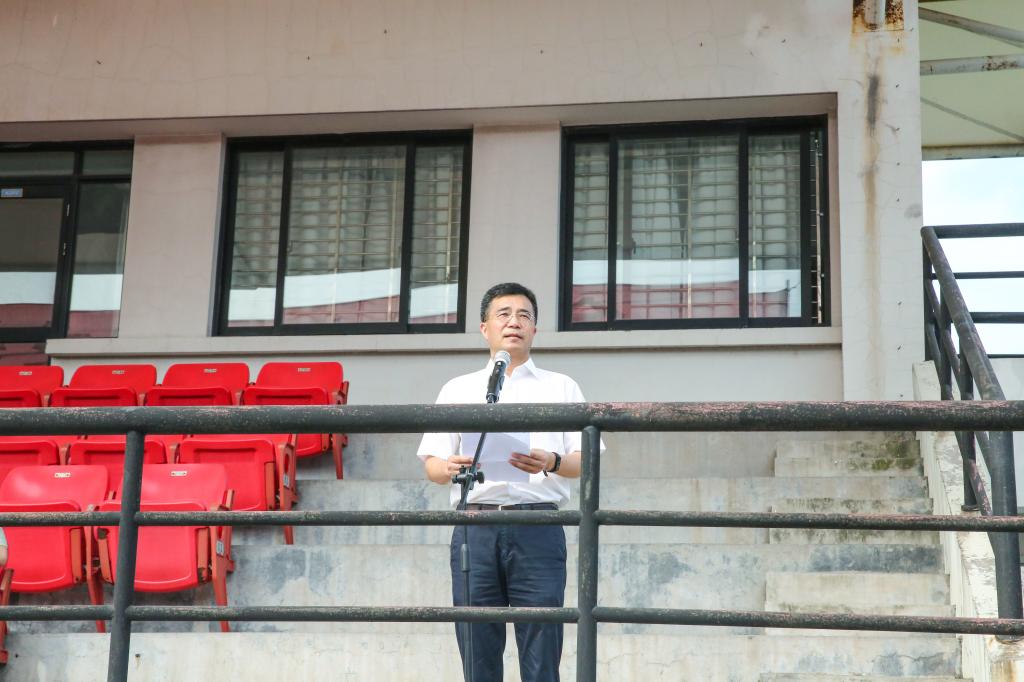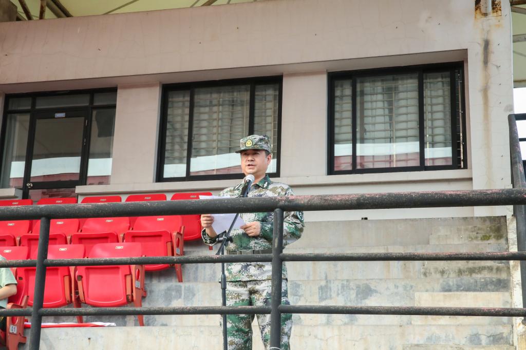 随后,军训团参谋长庄重发言,希望同学们以实现中华民族伟大复兴为己任,增强中国人的志气、骨气、底气,不负时代,不负韶华,不负党和人民的殷切期望;要牢记初心使命,筑牢理想信念之基,实现个人发展与国家发展、民族复兴同频共振;要坚毅执着,始终保持坚定不移的信念和战胜困难的勇气,乐观向上,勇往直前。
