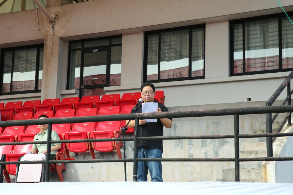 大会在嘹亮的国歌声中拉开序幕,军训团政委、学生处处长楼巍华宣布军训团编制序列。