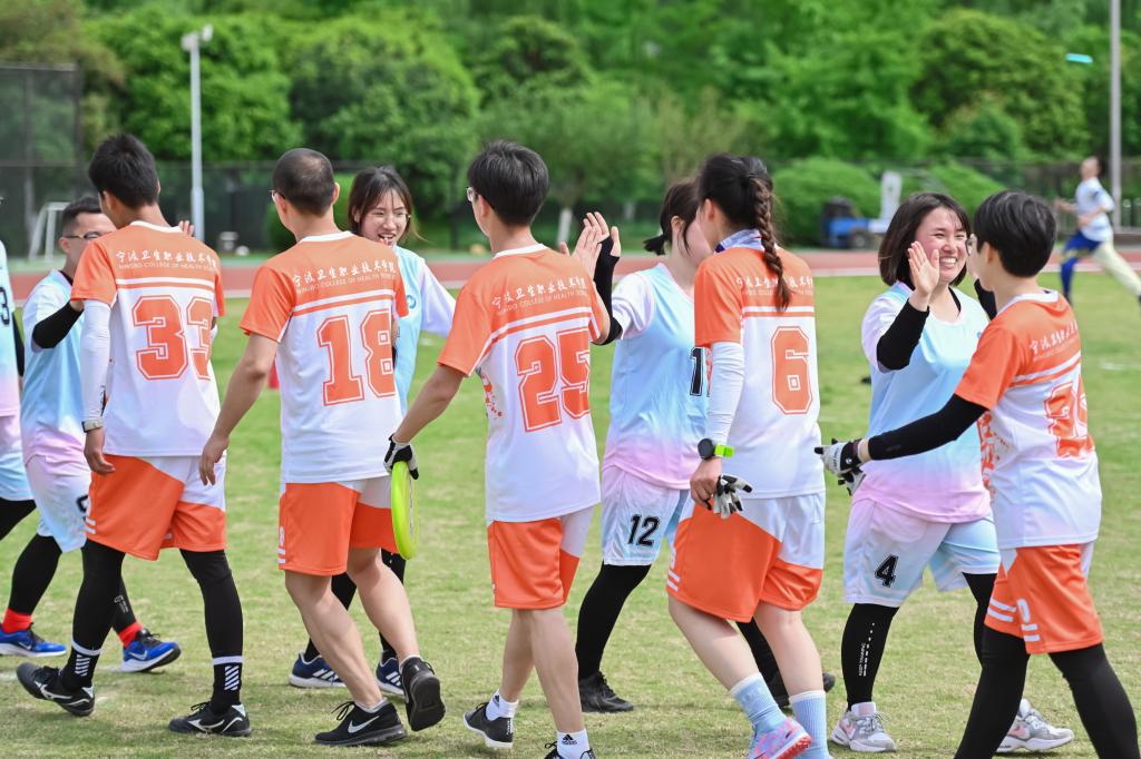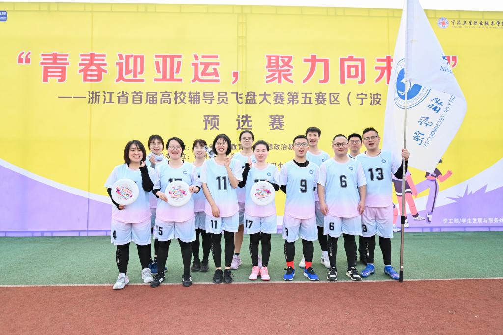4月22日,“青春迎亚运,聚力向未来”——浙江省首届高校辅导员飞盘大赛第五赛区(宁波舟山)预选赛在宁波卫生职业技术学院举行。我校辅导员队伍在来自宁波市、舟山市的16支队伍中脱颖而出,取得了小组赛第四的好成绩,顺利晋级总决赛。